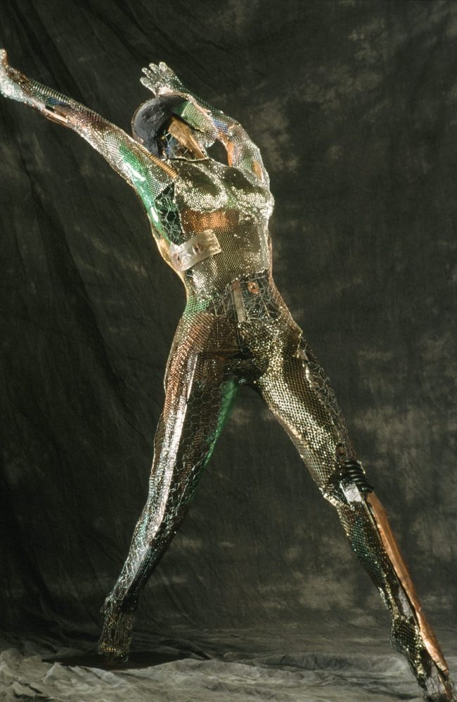 MediumFabricated sculpture of aluminum honeycomb, diverse construction materials. Acrylic paint and plaster on chromed steel base. Dimensions 70″w x 72″h x 28″d (177.8 x 182.9 x 71.1 cm) OversizeMixed media sculpture