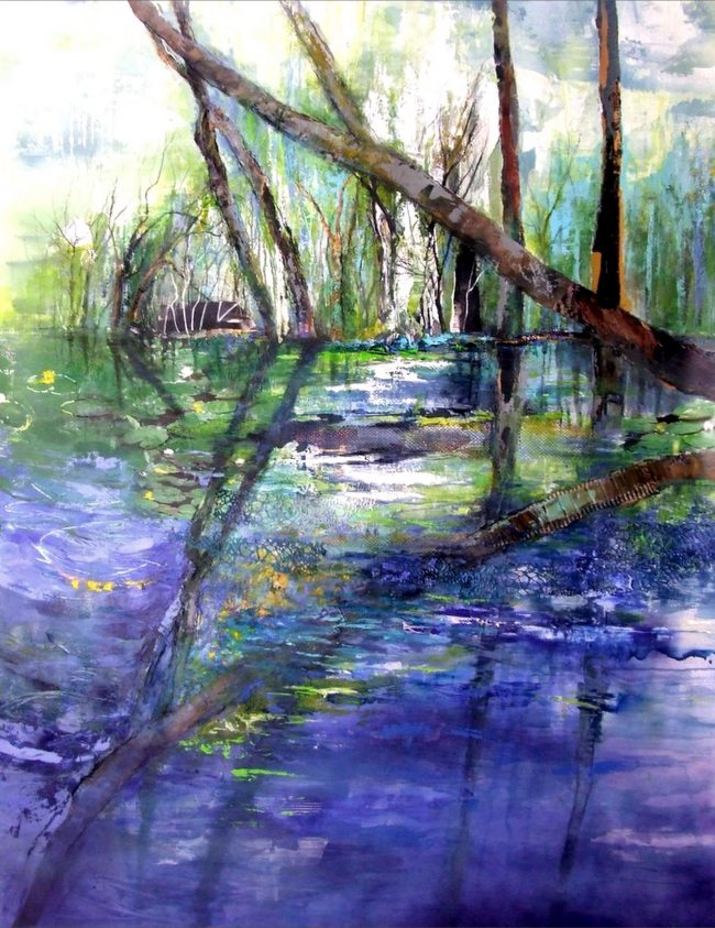 It was a magical canoe trip with a friend down Julington Creek in Jacksonville that inspired Beneath and Beyond. I was in the bow and could take pictures while absorbing the Old Florida natural beauty all around me. Like in all my landscape paintings, I am always inspired by place. Dimensions42″w x 58″h MediumAcrylic mixed…