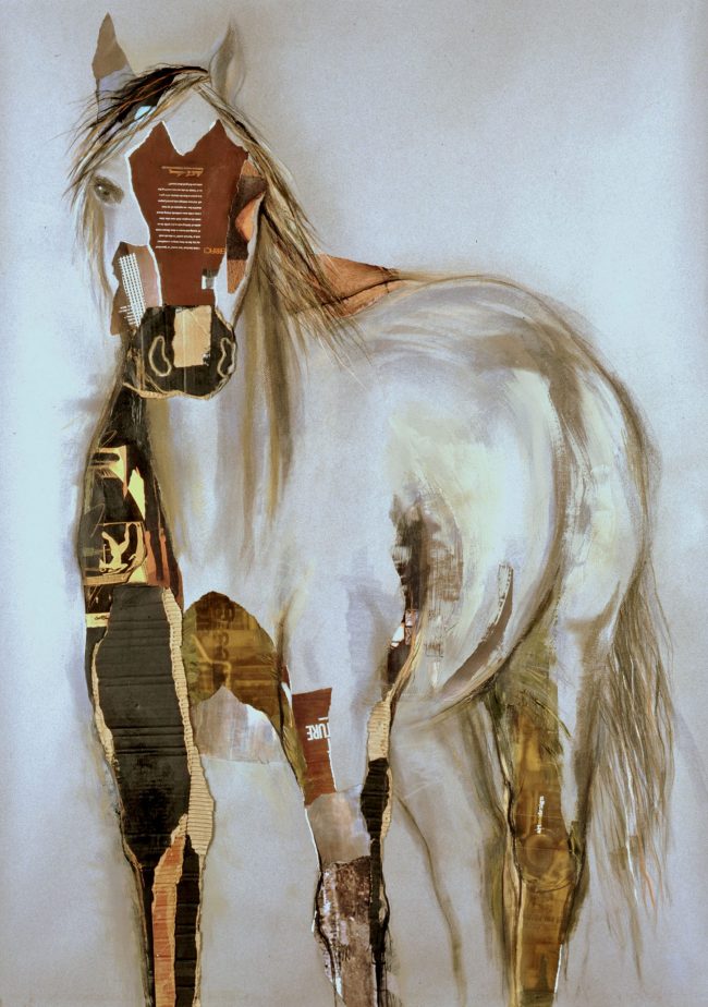 Dimensions 42″w x 60″h MediumCharcoal conte pastel colláge drawing on toned paper – Framed