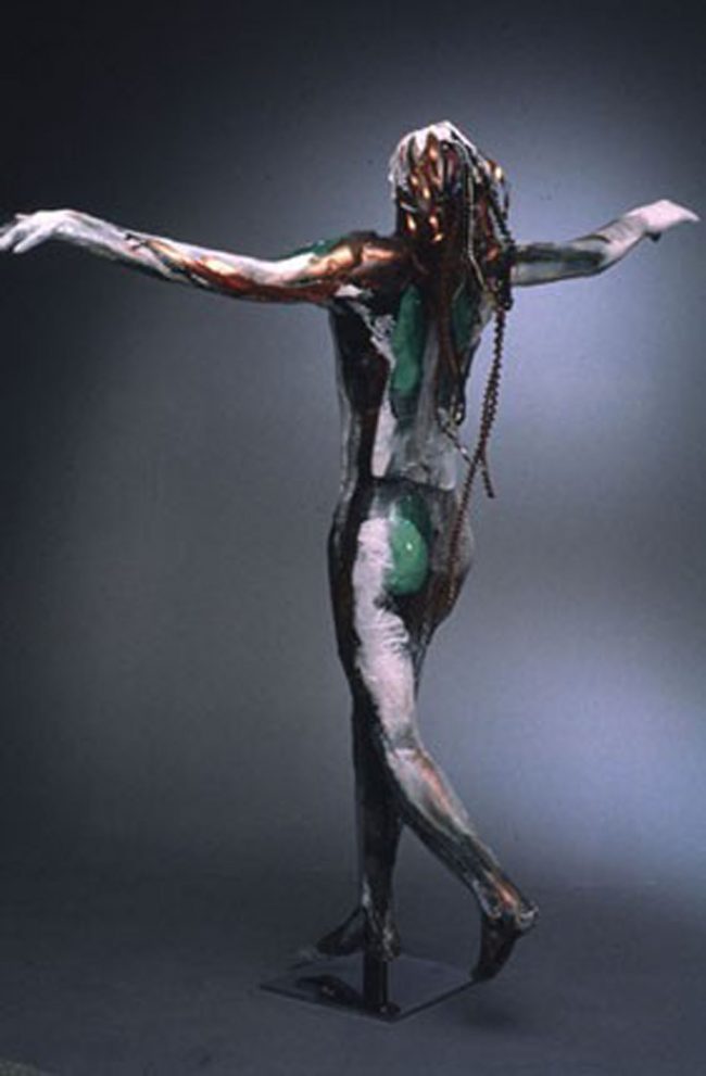 Metamorphosis….Bound came about as a result of my outrage at the abhorrent ritual of female genital mutilation of young girls—still practiced in some African, Asian and Middle East countries. The concept is rooted in an attempt to control women’s sexuality, thereby preventing their full unobstructed metamorphosis and full equality as they mature into womanhood. Dimensions72″ w x…
