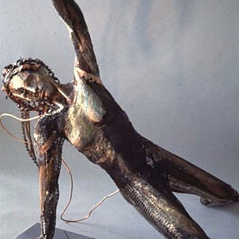 Dimensions 76″w x 56″h x 66″dMediumFabricated sculpture of aluminum honeycomb, diverse construction materials. Acrylic paint and plaster on chromed steel base.SOLD. THIS WORK IS NO LONGER AVAILABLE.